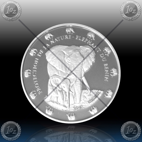 1oz BENIN 1000 FRANCS - ELEPHANTS 2015 "Protection de la Nature" BU