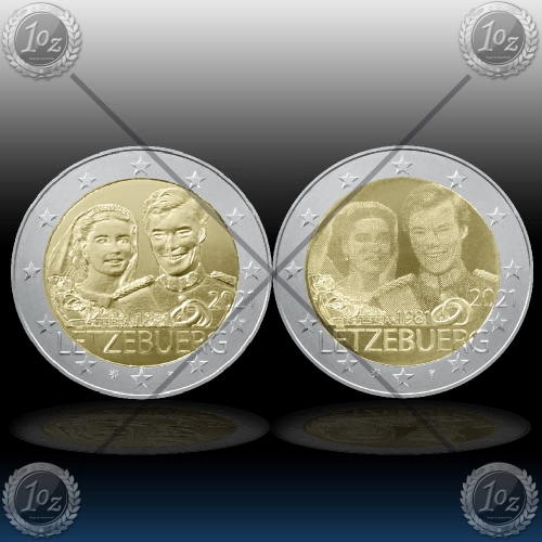 2 x 2 EVRO LUKSEMBURG 2021 "Marriage of Grand Duke Henri" UNC