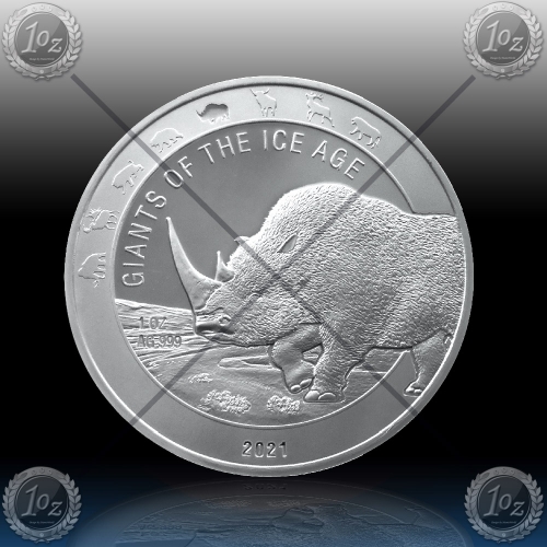 1oz GHANA 5 Cedis 2021 "Ice Age - Woolly Rhinoceros" BU